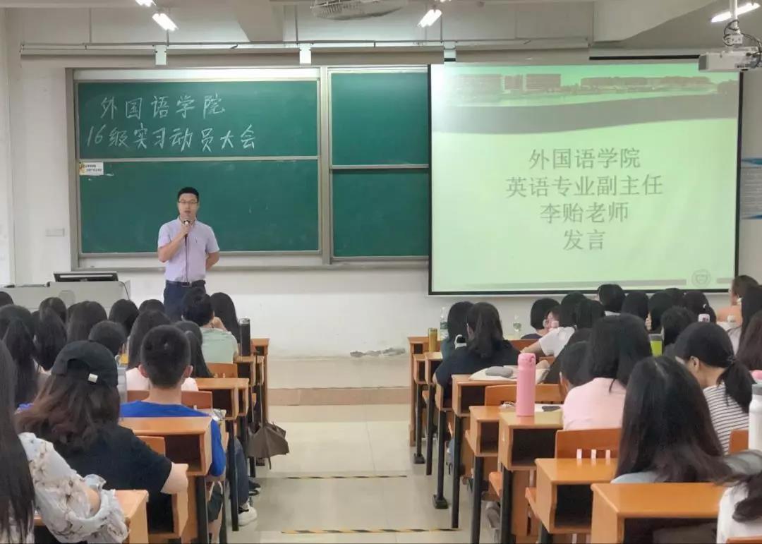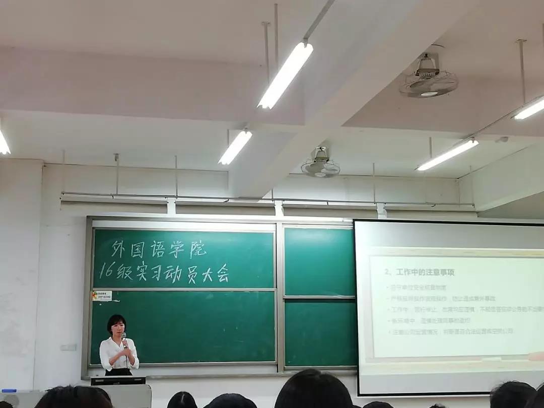 英专副主任李贻老师指出大学生实习的重要性,总结了在实习过程中需要注意的几个问题,提醒同学们要摆正自身位置与工作态度,平衡好后期的学习和工作时间。