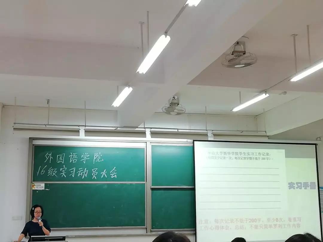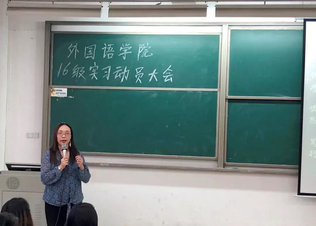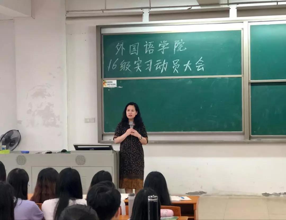 2019年5月29日下午,122cc太阳集成游戏2016级英语专业实习动员大会于我校东莞校区定静楼②-A402顺利举行。122cc太阳集成游戏院长廖益清教授、英语专业副主任李贻、实践部主任陈绮雯、教务秘书何燕、实习指导老师蔡佳琳、英语专业辅导员刘雅贤和2016级英语专业全体同学参加了本次大会。