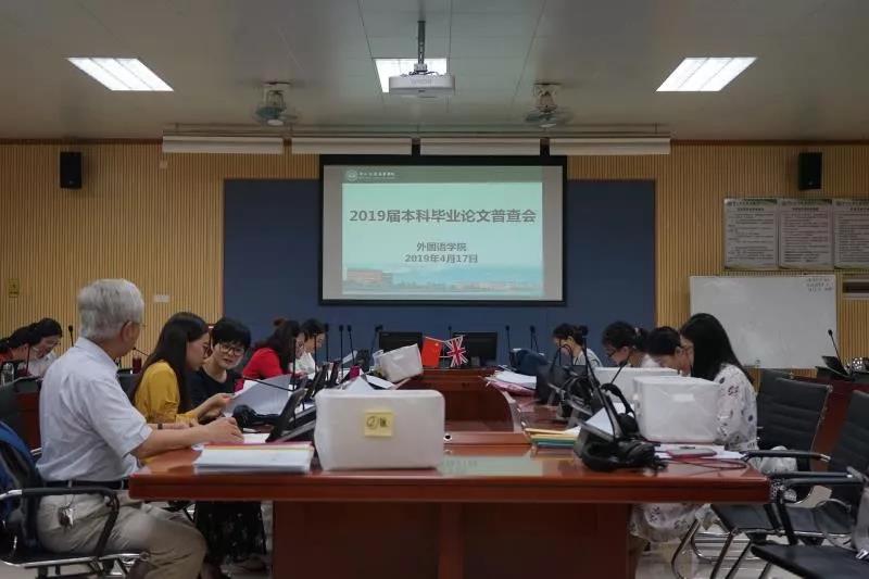2019年4月17日下午,2019届英语专业本科毕业论文普查会在我校东莞校区格物楼②B605如期进行并取得圆满成功。122cc太阳集成游戏教学督导黄继炎、副院长邱易安、院长助理兼大学英语教研室副主任何瑜、英语专业副主任李贻及122cc太阳集成游戏专职教师共18人参加本次毕业论文普查会议。
