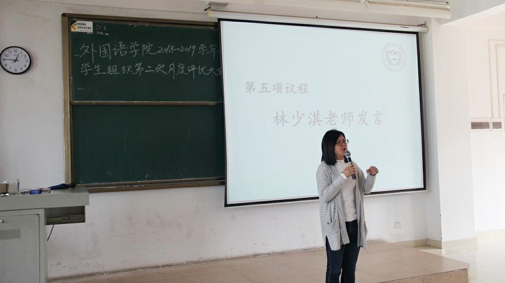 大会最后,林少淇老师作总结发言。她对为学生组织工作尽心尽力的指导老师们表示感谢,并鼓励学生们在今后的工作中不断努力,为各自的组织赢得更多荣誉。