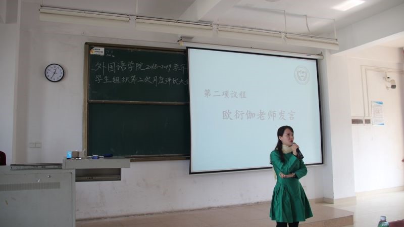 会议伊始,欧衍伽老师为此次的评优大会作了发言。她表示,学生组织的月度评选是对现阶段的干部、干事工作予以肯定的一种方式。无论在学习、工作还是生活方面,各学生组织的干部及干事们都要起到模范带头作用,为其他同学作出表率。希望各学生组织在接下来的日子里继续努力,助力122cc太阳集成游戏工作顺利开展。
