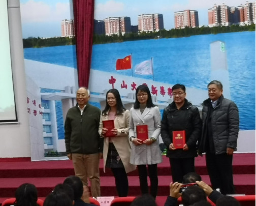 我校王庭槐校长(右一)、中山大学原副校长陈汝筑教授(左一)与一等奖获奖教师合影留念