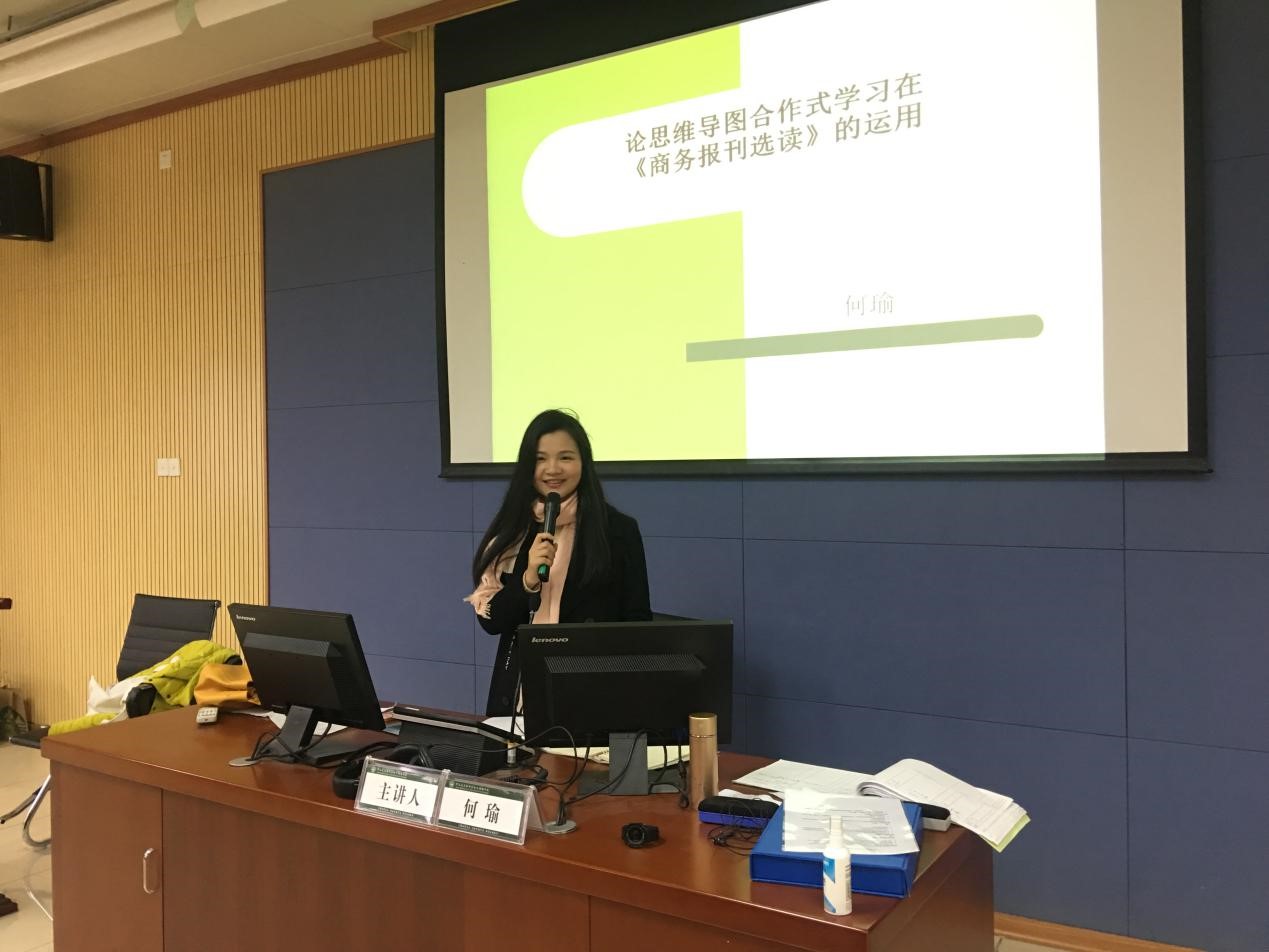 为培养学生英语学习的综合能力,提升大学英语课堂教学整体质量,2018年12月12日下午,122cc太阳集成游戏“魅力教师”说课之论思维导图合作式学习分享会在我校东莞校区格物楼②-B605同传室顺利召开。被我校教务处评为2018年度“魅力教师”的大学英语教研室副主任何瑜老师精彩开讲,全体大学英语任课教师及外院部分学生代表与会。