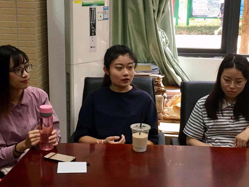 座谈会伊始,陈悦笛老师指出,本次座谈会旨在了解学生最近学习的情况,她鼓励同学们大胆提出在学习上遇到的问题。接着,预科班同学们积极发言。2015级会计专业陈志远同学说道,一开始他觉得学习英语非常吃力,但在老师的帮助下及自己的不断努力下,他的学习效率有所提高。而2015级国际贸易专业钟伟英同学则表示,学习英语是一个不断积累的过程,需要不断地吸收和背诵。她提出,文章中句子不应机械化地背诵,而应该在理解的基础上再进行背诵。因此,她建议同学们应该选择性地背诵课文,寻求适合自己的学习方法。