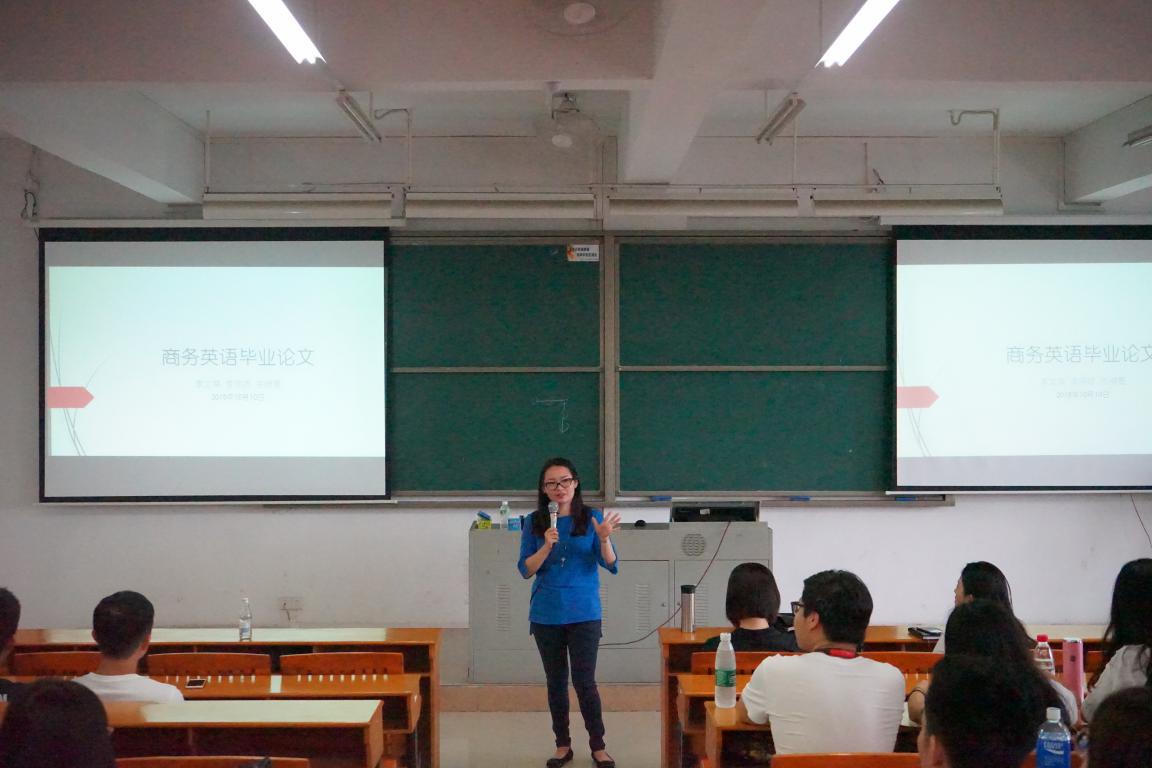 为使2019届毕业生更清晰地了解论文的选题方向,122cc太阳集成游戏于2018年10月10日上午在我校东莞校区定静楼②-A301召开论文指导大会。122cc太阳集成游戏商务英语专业副主任李文蓓老师,基础课教研室主任李明娇老师及2015级商务英语专业全体学生参加了此次会议。