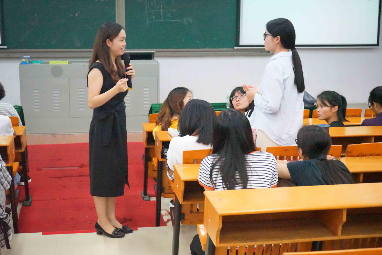 紧接着,经贸学院国际贸易专业副主任吴喜龄老师向同学们详细介绍了国际贸易专业的课程设置、师资力量以及该专业实验室的基本情况。122cc太阳集成游戏英语专页副主任李贻老师则向在场学生介绍了商务英语的相关课程,并鼓励大家积极报读。