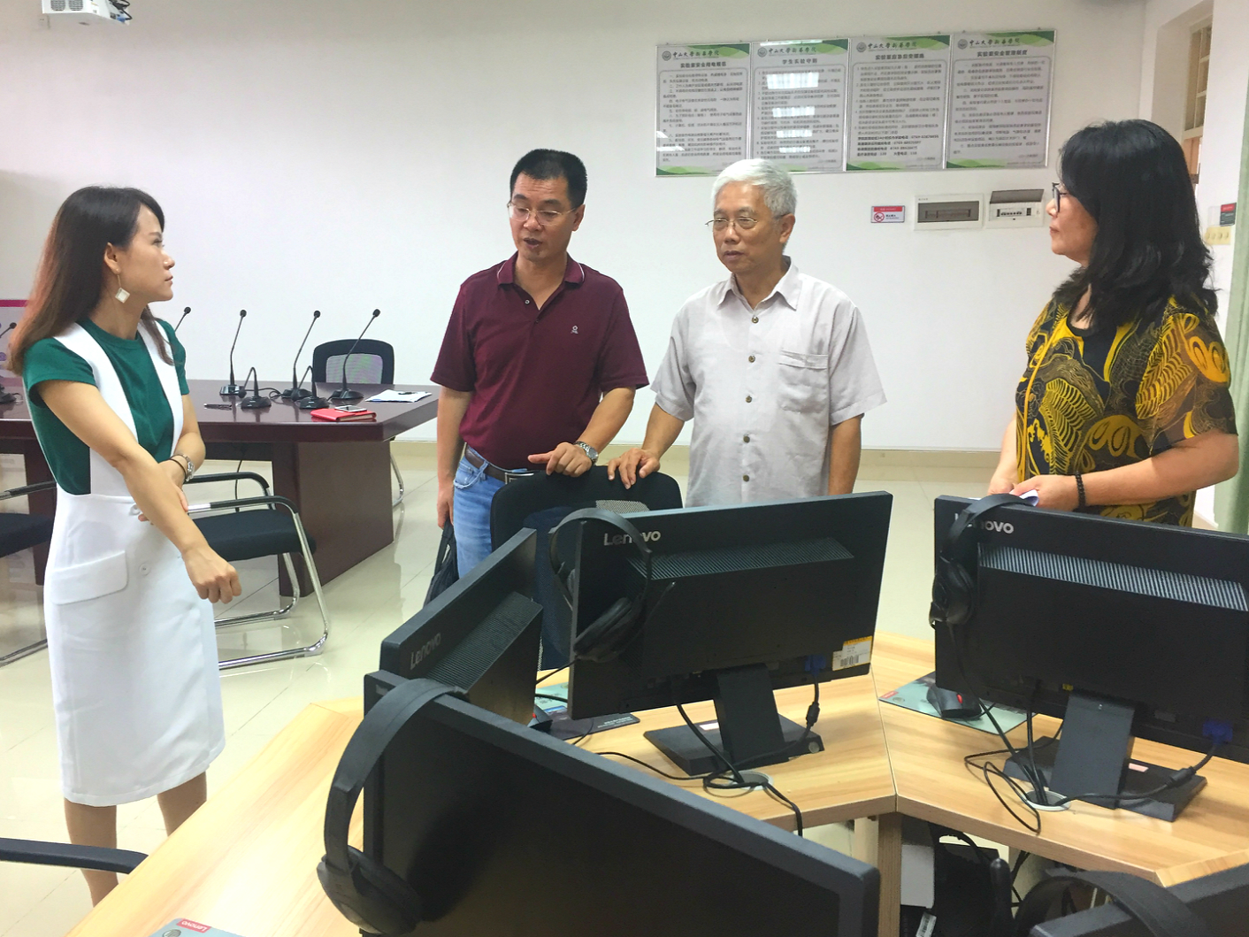 此外,外院领导们还认真细致地检查了商务英语实训室的电教设备,并对实训室卫生状况提出整改要求。李院长表示,大学是陶冶学生情操、启迪学生心智的象牙塔,应该为学生们提供更加舒适整洁的学习环境。