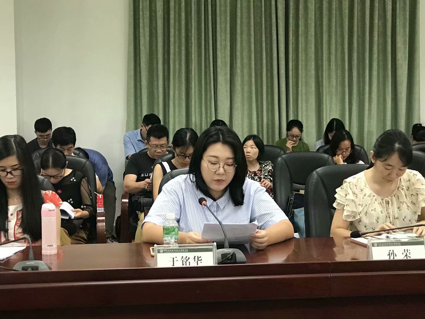 孙荣老师针对“相约晨曦 英文朗读”晨读活动开展的情况进行汇报。她指出本次活动外院大学英语教研室联合校学生会共同举办,累计有4万余人次参与,全勤人数达1150余人,本次活动为学生们提供了晨读的平台,培养了学生们良好的作息习惯和学习氛围。