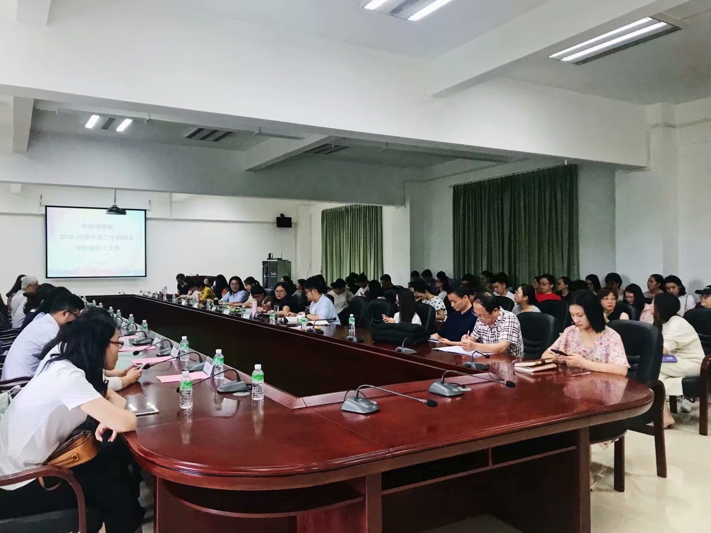 廖院长在肯定了2018学年第二学期全院教职工成绩的基础上,指出了外院目前发展存在的突出问题:在教研方面,老师们仍需在数量和质量上下功夫。教与学、教与研互相促进,不断思考,不断成长,方为合格教师。教研是作为高校教师一辈子都必须坚持的工作。