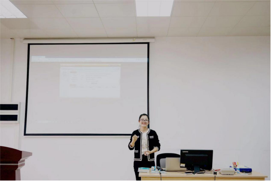 紧接着,由亿学软件公司岗位销售工程师王晓楠担任主讲人,介绍亿学软件推出的软件系统,如跨境电商实战平台、商务英语函电实训系统、跨文化交际实训系统、商务英语单证实训系统、国际商务谈判实训系统及商务英语练考赛一体化平台等。随后他重点介绍了亿学软件的关于视听说的系统,并向老师们演示操作步骤。他介绍,这个系统重要的模块为互动实训和案例分析。其有利于让学生了解自己的薄弱板块,让学生进行自主学习和开发自己的思维。