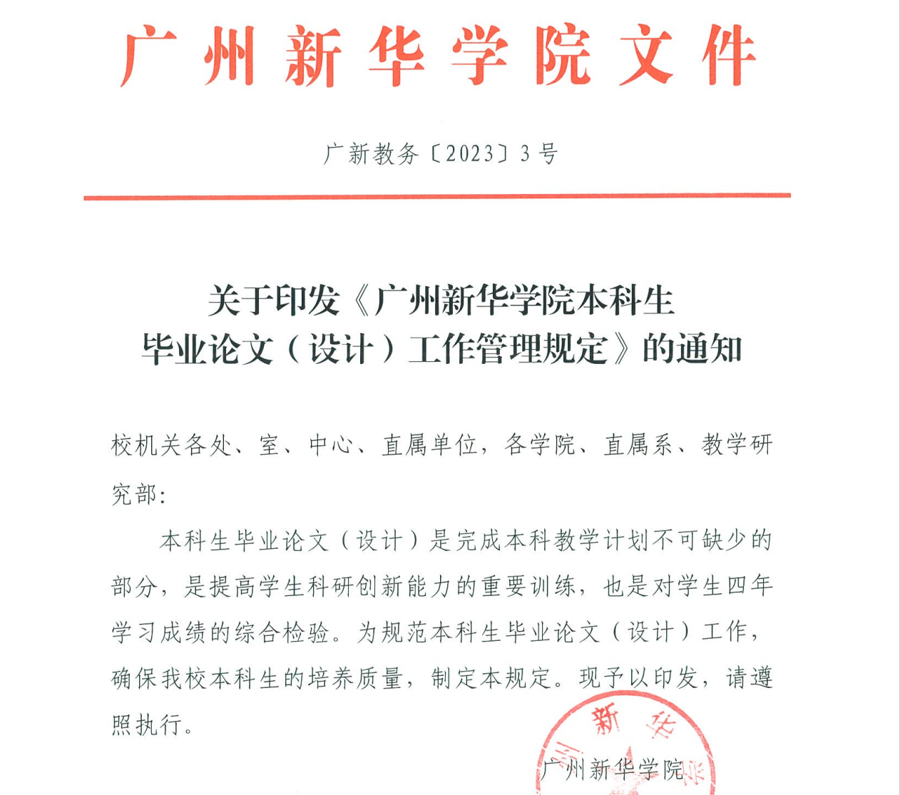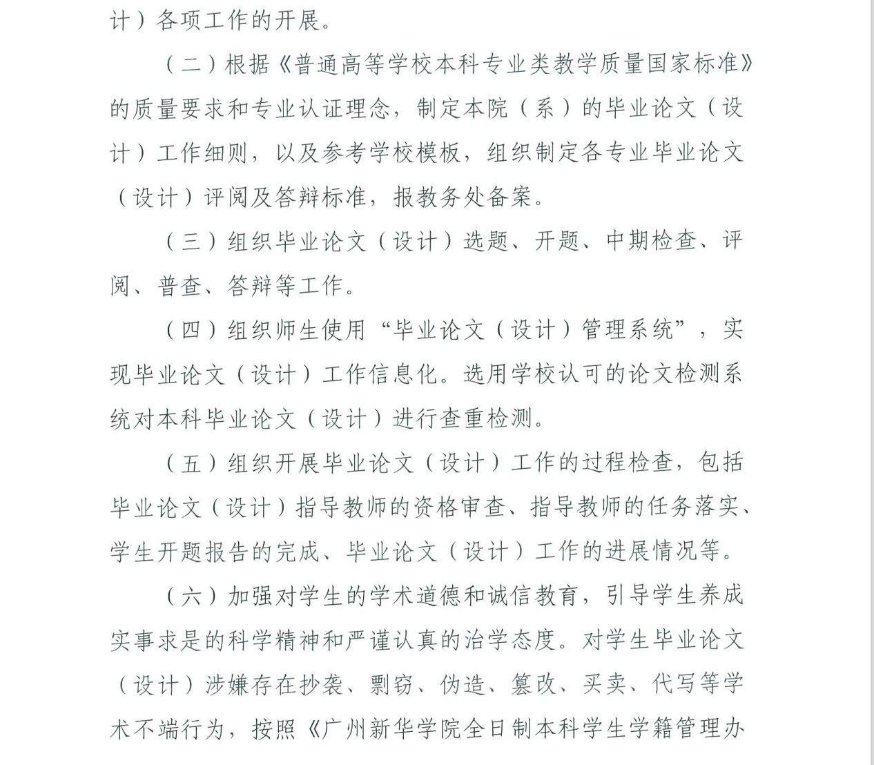 广州新华学院本科生毕业论文(设计)工作管理规定