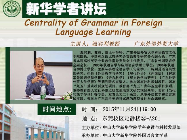 讲座题目:Centrality of Grammar in Foreign Language Learning