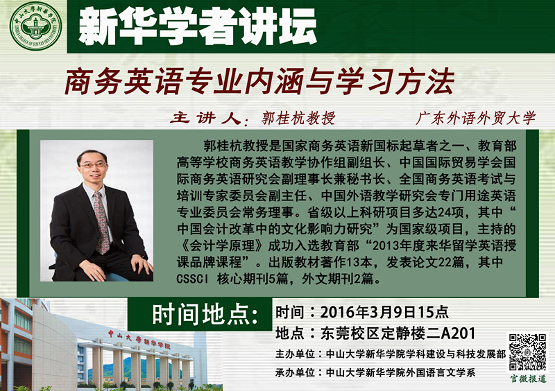 主讲人:郭桂杭,教授,广东外语外贸大学国际商务英语学院院长
