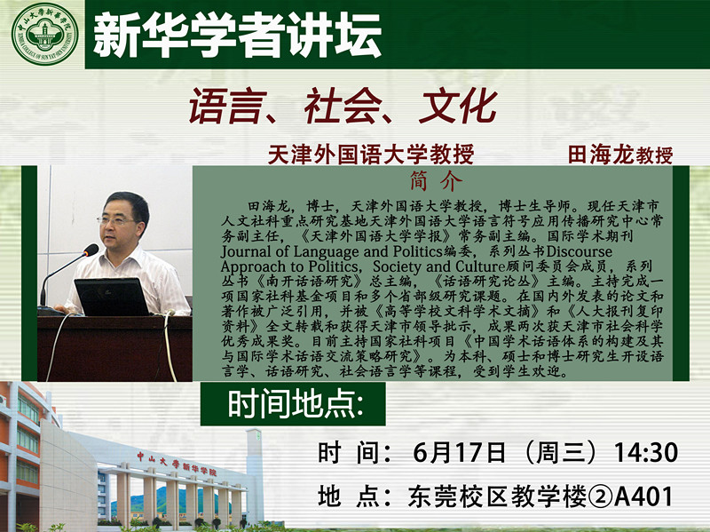 主讲人:田海龙,天津外国语大学教授,博士生导师