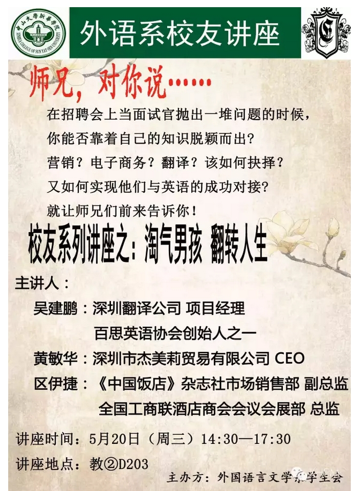 【讲座预告】第一届外语系校友讲座第二场—淘