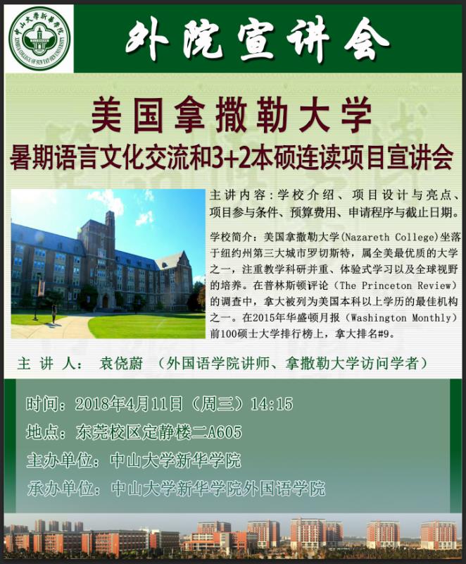 主讲内容:学校介绍、项目设计与亮点、项目参与条件、预算费用、申请程序与截止日期