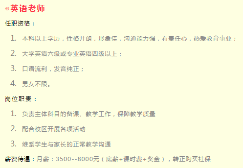 b.热爱教育事业,有相关从业、实习、兼职经验者优先;