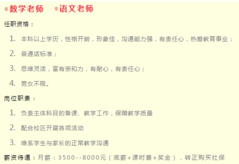 3、教师岗位 4000-12000元