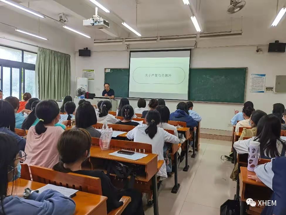 讲座伊始,关教授指出,“信达雅”翻译原则是由我国清末新兴启蒙思想家严复提出。“信”指意义不悖原文,即是译文要准确,不偏离,不遗漏,也不要随意增减意思;“达”指不拘泥于原文形式,译文通顺明白;“雅”则指译文时选用的词语要得体,追求文章本身的古雅,简明优雅。此外,关教授还向同学们介绍了我国翻译大家许渊冲先生,并根据“信达雅”的翻译原则赏析了许渊冲先生的诗词译作,让学生从翻译赏析中进一步了解“信达雅”三原则。