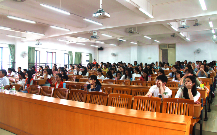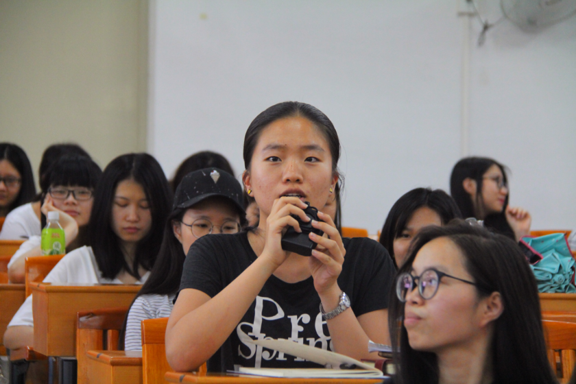 互动环节中,同学们踊跃提问,现场气氛十分热烈。欧阳教授也给了同学许多学习翻译上的建议,他认为翻译本身并不需要多少技巧,多看原汁原味的英文名著,平常多了解其他专业的知识是提升翻译能力的重要方法。