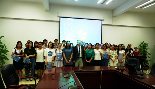 现场以热烈的掌声对Vicente教授表示欢迎。讲座伊始,Vicente教授强调在当前国际发展要求及中国一带一路政策背景下学习西班牙语的优势与重要性,并简明扼要地介绍了西班牙作为欧洲高等教育区(EEES)成员的优势,使在场师生快速了解西班牙高等教育体系。
