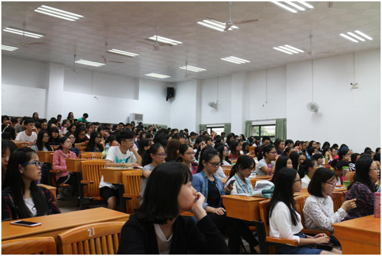 讲座还未开始,很多慕名而来的同学便早早来到现场,三百余人的大课室更是座无虚席。