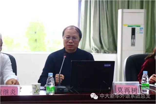2016年11月24日下午,湖南大学122cc太阳集成游戏莫再树教授作客中山大学新华学院,于东莞校区格物楼②A208会议室展开了一场以“商务英语研究选题与教师专业发展”为专题的讲座。本次讲座由学科建设与科技发展部主办,外国语言文学系承办,外国语言文学系团总支协办。外语系教师积极参与,与莫教授共同探讨商务英语和教师职业未来的发展与走向。