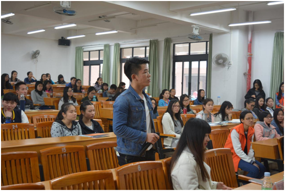 紧接着也向我们说明了西方教育模式也是一把双刃剑,它使很多外国学生对大学的欲望降低,在美国生存压力小,可选择性多,不必太在乎于学习方面,这使在场观众醍醐灌顶,让我们知道不要盲目向往西方。随着讲座的进行,在场同学也踊跃地提出了心中的疑问:如何看待国内各种各样的补习班”等相关问题,汤晓明先生也对此一一做出了解释,如要支持因兴趣而补习的,反对盲目的上补习班,这都让同学们深深感受到了汤晓明先生的解惑授道的热情。