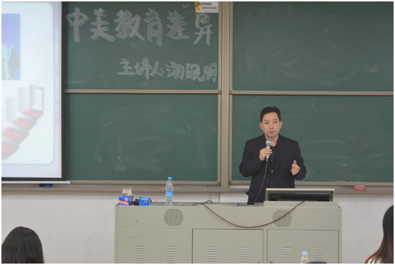 为促进中美文化之间的交流和碰撞,并增长同学们自身的见识,外语系团总支于2016年3月30日下午14:30,定静楼2A301开展了《中美教育差异》专题讲座。我们很荣幸的邀请到美国皇桥国际教育集团董事长,美籍华人汤晓明先生与我们一起探讨与交流中美文化教育差异。外语系徐博闻老师担任本次讲座的主持人。