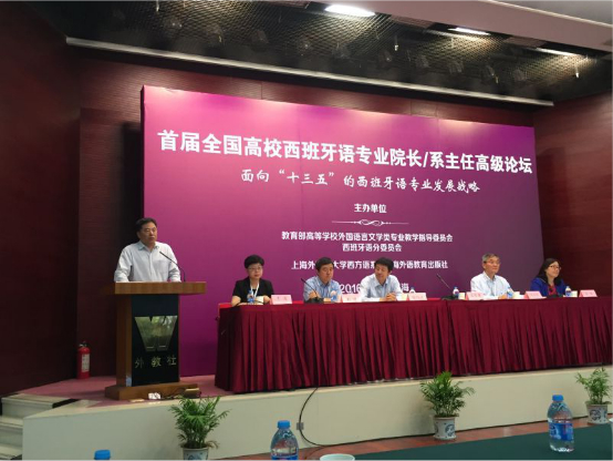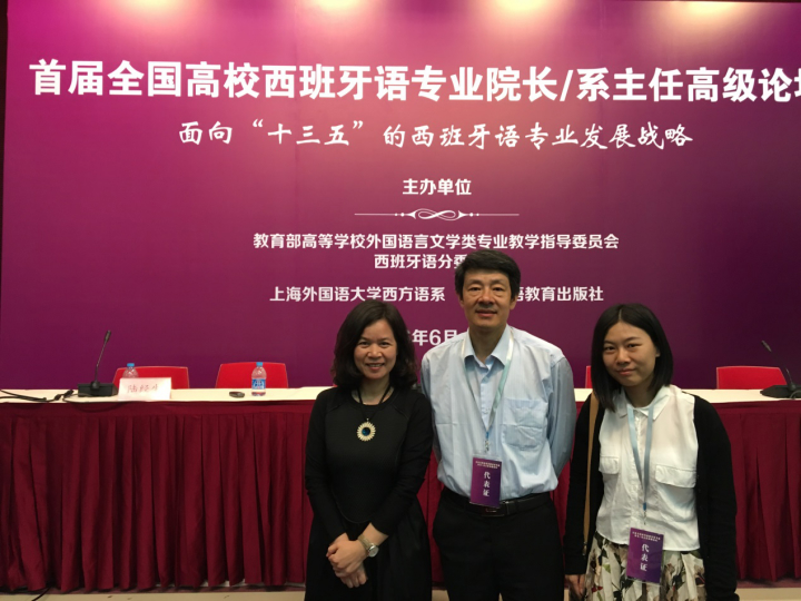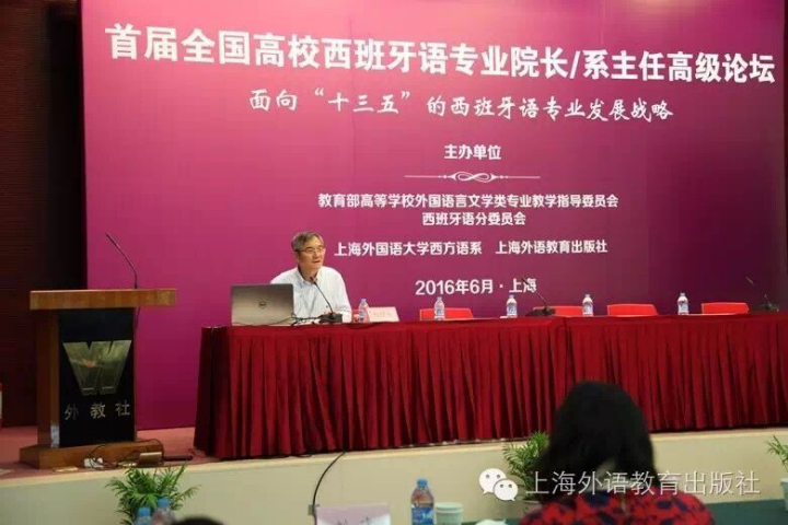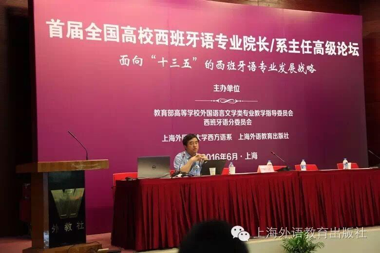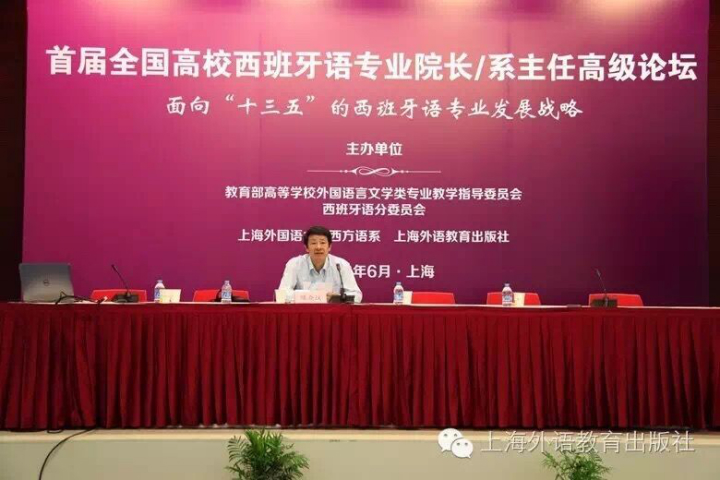2016年6月3日,首届全国高校西班牙语专业院长/系主任高级论坛在上海外语教育出版社报告厅举行。本次会议由教育部高等学校外国语言文学类专业教学指导委员会西班牙语分委员会、上海外国语大学西方语系、上海外语教育出版社联袂举办,来自全国近60所高校80余名专家学者参加了会议。我院外语系廖益清主任、西班牙语专业负责人吴梦醒老师参加了此次论坛。