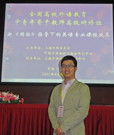 外语系(上海2015年4月20日),系主任助理李贻老师参加了由上海外国语大学和中国外语教材与教法研究中心举办的为期三天的全国高等学校外语教育中青年骨干教师高级研修班之“新《国标》指导下的英语专业课程改革”。参加本次会议之目的和主要收获在于通过学习研讨英语专业综合改革的方式和方法,探索创新独立学院英语专业应用型人才的培养模式、教学体系与建设相应的师资队伍,以提升本专业满足新时期国家社会需要、服务区域发展的能力。