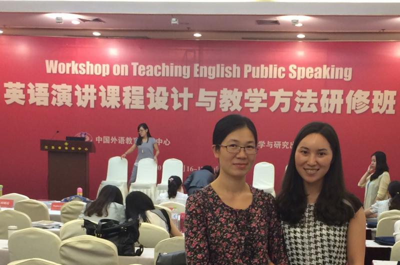 2015年5月16-17日,全国高等学校“英语演讲课程设计与教学方法”研修班在江苏省会议中心成功举办。作为高等学校外语学科中青年骨干教师高级研修班的重要组成部分,此次研修班秉持“推动科研、服务教学、坚持创新”的宗旨和Learning by Doing的理念。来自全国200多所高校300余名教师参加了研修班的学习,我院外国语言文学系青年骨干教师李明娇、袁侥蔚参加了此次研修班并顺利结业。