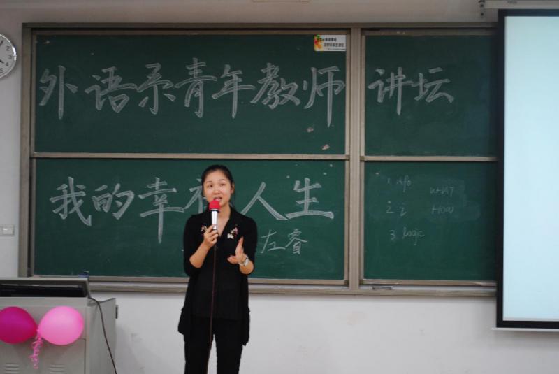 2015年10月14日下午14:15,中山大学新华学院外语系青年教师讲坛之“我的英语/幸福/人生我做主”东莞校区教②A202开讲。本次讲座主讲人是外语系专职教师左睿,出席讲座的嘉宾有:外语系办公室副主任欧衍伽及外语系黄珍、王嘉敏等老师。