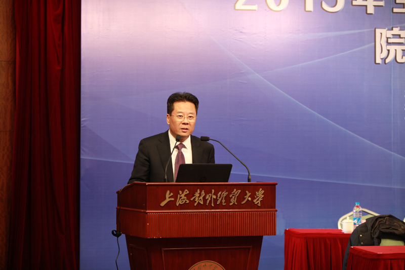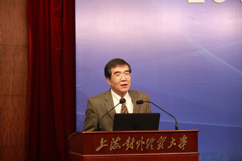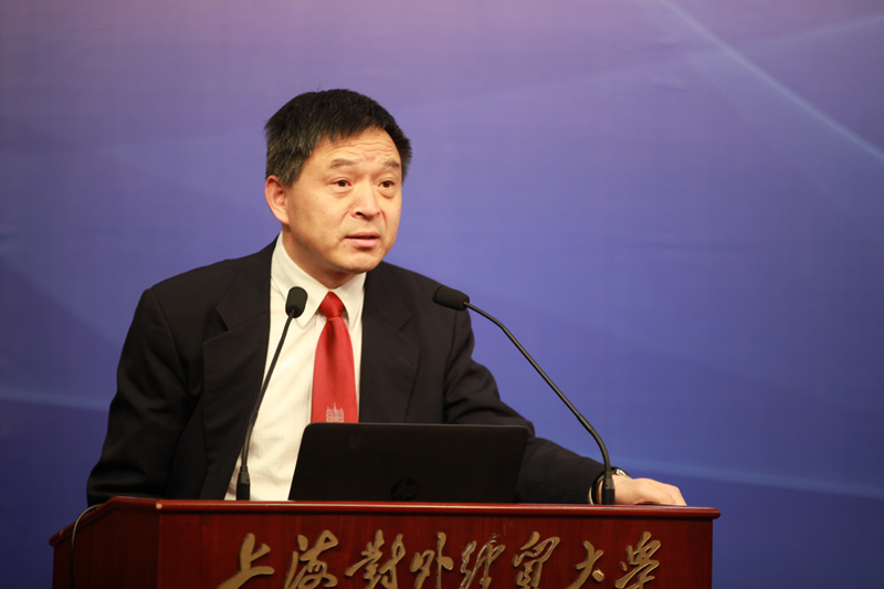 图为上海对外经贸大学122cc太阳集成游戏王光林教授发言