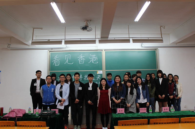 2016年3月23日(星期三)下午14:30,中山大学新华学院外语系献礼十周年院庆系列讲座之“看见香港——在夹缝中寻找蓝天”在定静楼②A201隆重开讲。此次主讲的嘉宾是香港中文大学的计算机辅助翻译硕士——黄越悦老师和香港理工大学的英语语言教育专业文学硕士——黄千老师。尽管窗外烟雨朦朦,似乎有些郁郁寡欢,但教室里面笑声连连,到底是什么神奇的魔力让这一墙之间景象迥异呢?让我们一起来一探究竟吧!