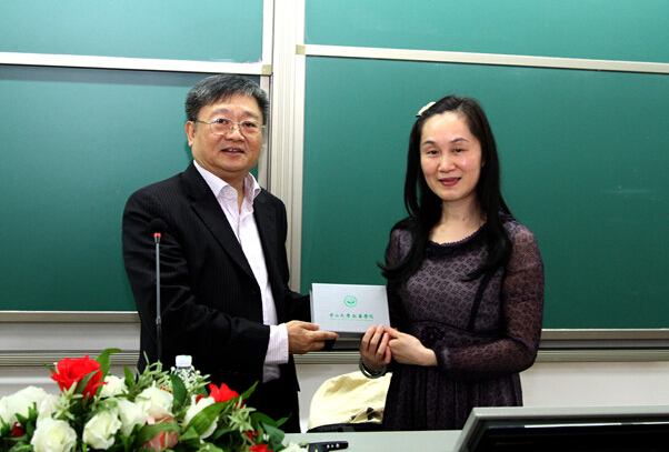 王庭槐教授向戴凡教授赠送学院纪念品
