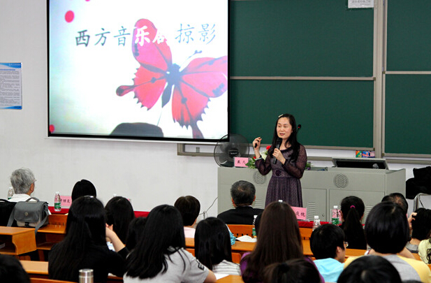 戴凡教授以“西方音乐剧掠影”为题,梳理了西方音乐剧发展的脉络和美国、英国音乐剧演出的概况。戴教授带领大家欣赏10部经典音乐剧如《猫》、《音乐之声》、《国王与我》、《妈妈咪呀》等的精彩片段,让全体师生共享音乐、舞蹈、艺术之美。