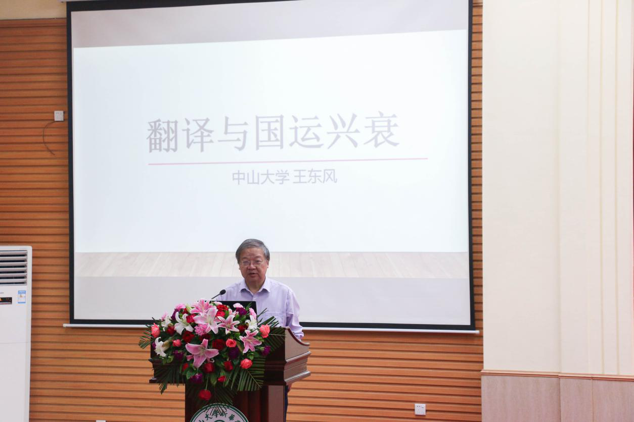 2018年11月3、4日“中国外语教育改革40周年回顾与展望学术论坛暨广州外国语协会第六届会员代表大会”在我校东莞校区成功举办。11月3日上午,由中山大学122cc太阳集成游戏院长、博导、中山大学新华学院学科带头人王东风教授率先担任主讲嘉宾,带来“翻译与国运兴衰”主旨演讲。