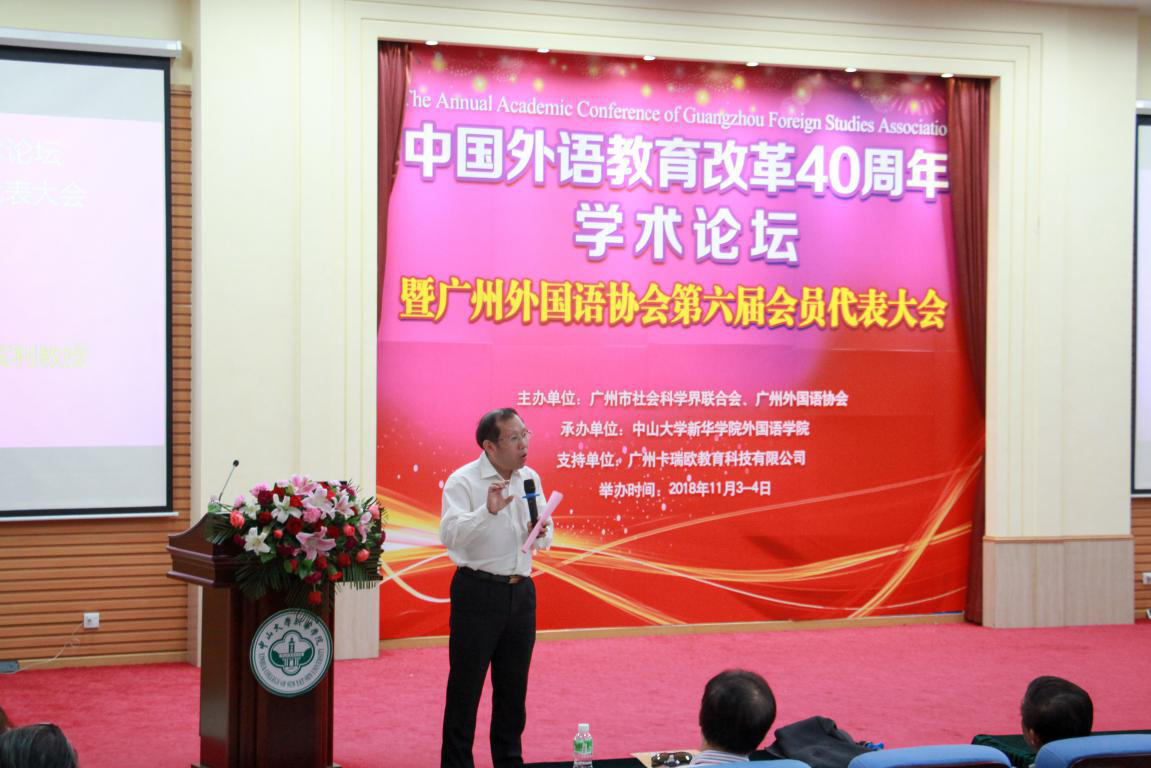 2018年11月3日下午,“中国外语教育改革40周年回顾与展望学术论坛暨广州外国语协会第六届会员代表大会”下午场在中山大学新华学院东莞校区定静楼①F401成功举办。论坛以“中国外语教育改革40周年回顾与展望”为主题,邀请了200余位来自全国的专家学者和高校代表参加会议,共同探讨新时代中国外语教育改革进程健康有序的发展策略和行之有效的方法路径。