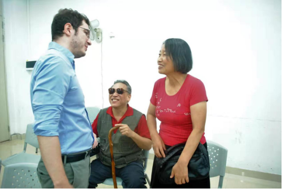 王锁瑛教授(右一)、鲁晏宾教授(右二)与外教Antonio(左一)亲切交谈
