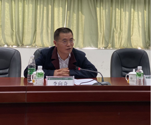 我院副院长李向奇发表讲话。副院长李向奇从自身的著作出版为切入点,反映了我院小语种教材较少、经费少等问题。同时他还鼓励我院老师要大胆的创作、立项。