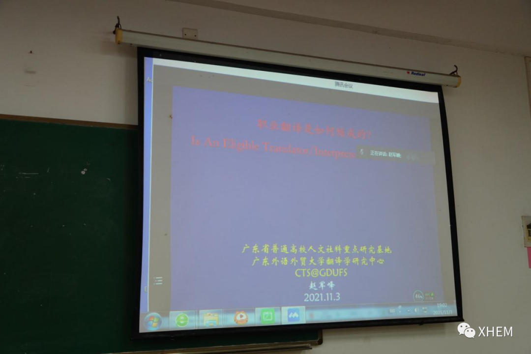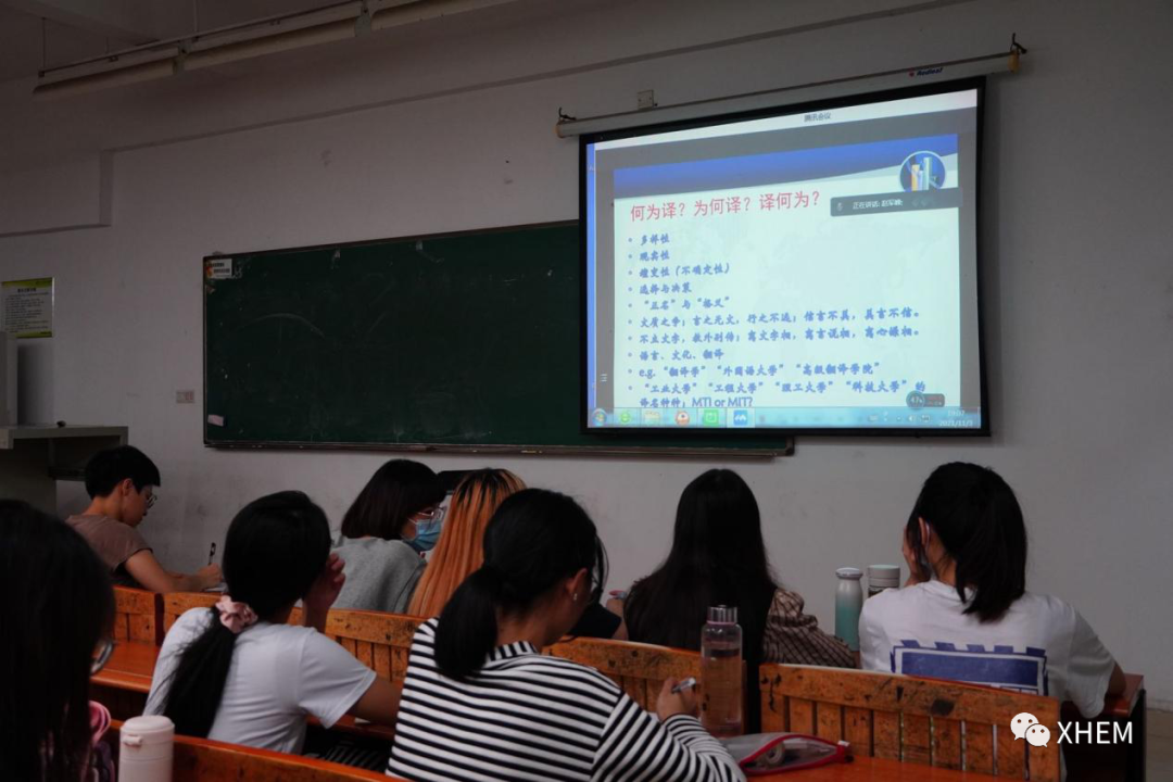 赵教授首先从“何为译、为何译、译何为”这三个问题切入,详细讲解了何为翻译,何为语言,以及二者之间的关系。并以学校和翻译学院的名称为例,说明同样的中文名称对应不同的英文翻译,借此阐述了音译、直译等多种翻译方法的运用与区别。