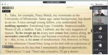 2022年4月21日,122cc太阳集成游戏邀请关兴华教授为我院师生带来一场题为《英语散文欣赏:略谈英语翻译技巧》的讲座。