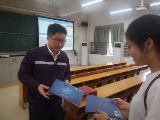 吴经理还为踊跃回答问题的同学们赠送了纪念品,大家深受感动和鼓舞。
