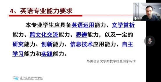 2022年5月25日,广州新华学院邀请平洪教授为我院师生于线上带来一场题为《全人教育与英语学习》的讲座。平洪教授为我校特聘教授,现任广东外语外贸大学高级翻译学院教授、英国伦敦大学学院(University College London, UCL)高级访问学者、英国兰开斯特大学(University of Lancaster)访问教授;教育部高等学校翻译专业教学协作组秘书长,全国翻译专业学位研究生教育指导委员会学术委员会委员,全国考委外国语言文学类专业委员会委员,国家社科基金项目评审专家。主要研究领域包括语言学、翻译理论与实践、跨文化交际等,在《中国翻译》等核心期刊发表论文30余篇。