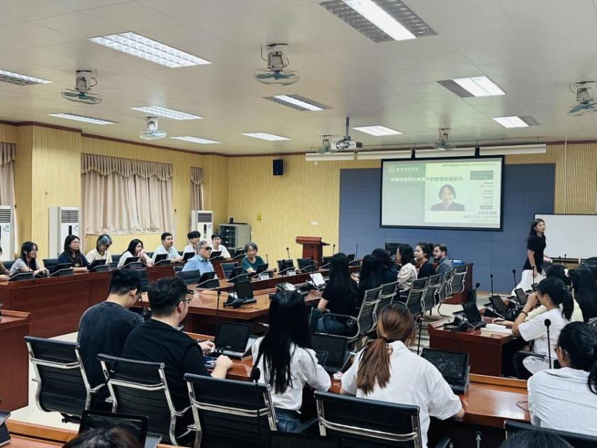 讲座中,王锁瑛教授和鲁宴宾教授一同分享了自己与葡语之间的深厚渊源。从学习葡语,到在上海外国语大学创办葡语专业,再到远赴葡萄牙进行中葡文化交流和传播,既是缘分,也饱含坚持和热爱。当提到自己是由西语转学葡语时,王教授脸上洋溢着喜悦与自豪。王锁瑛教授指出,不论是否是主动选择葡语,既然学习了它,就要慢慢喜欢它,因为唯有热爱长久不息。同时还强调,要端正学习态度,良好的学习态度是掌握语言学习的关键。