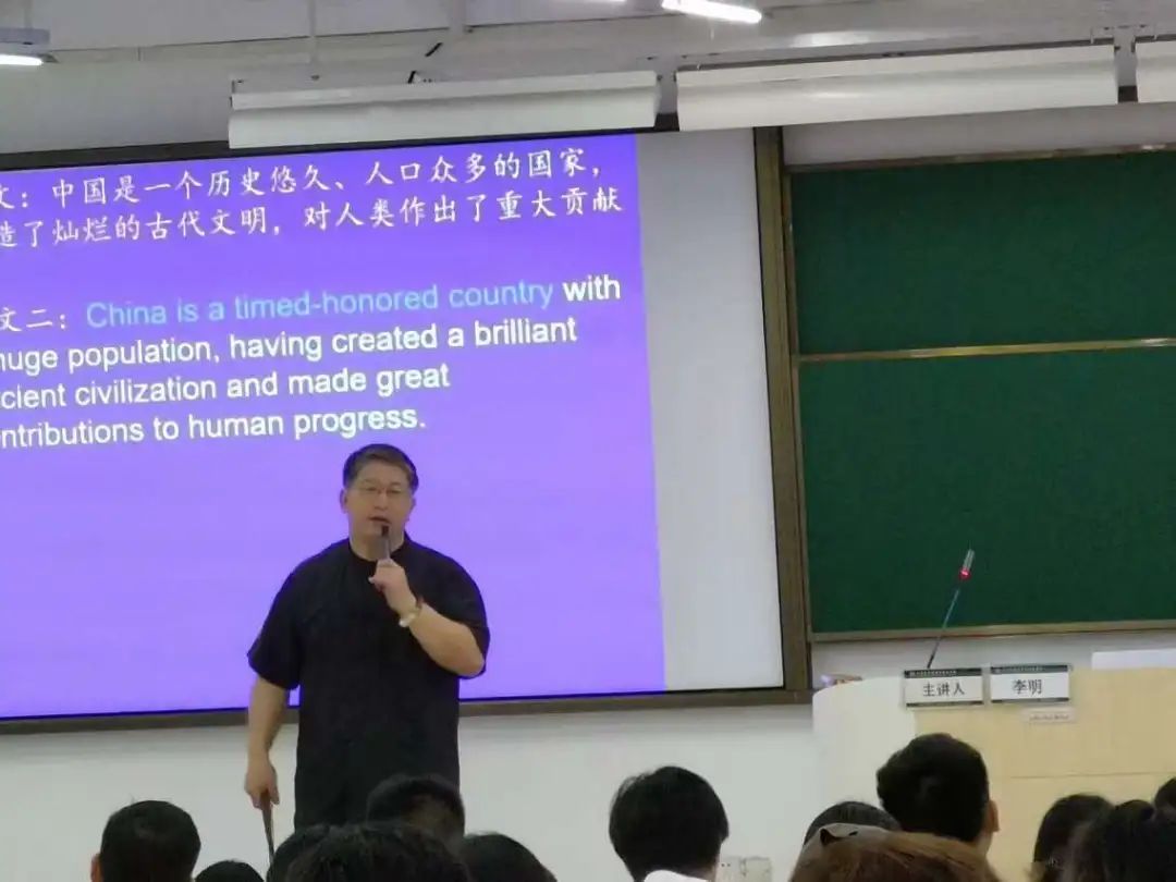 最后,李教授强调了翻译在文化交流和教育国际化中的重要作用。他指出,翻译不仅是语言的桥梁,更是文化的使者。因此,学生们应认真对待翻译工作,不断提升自己的翻译素养和能力,为中外文化交流和教育国际化做出贡献。