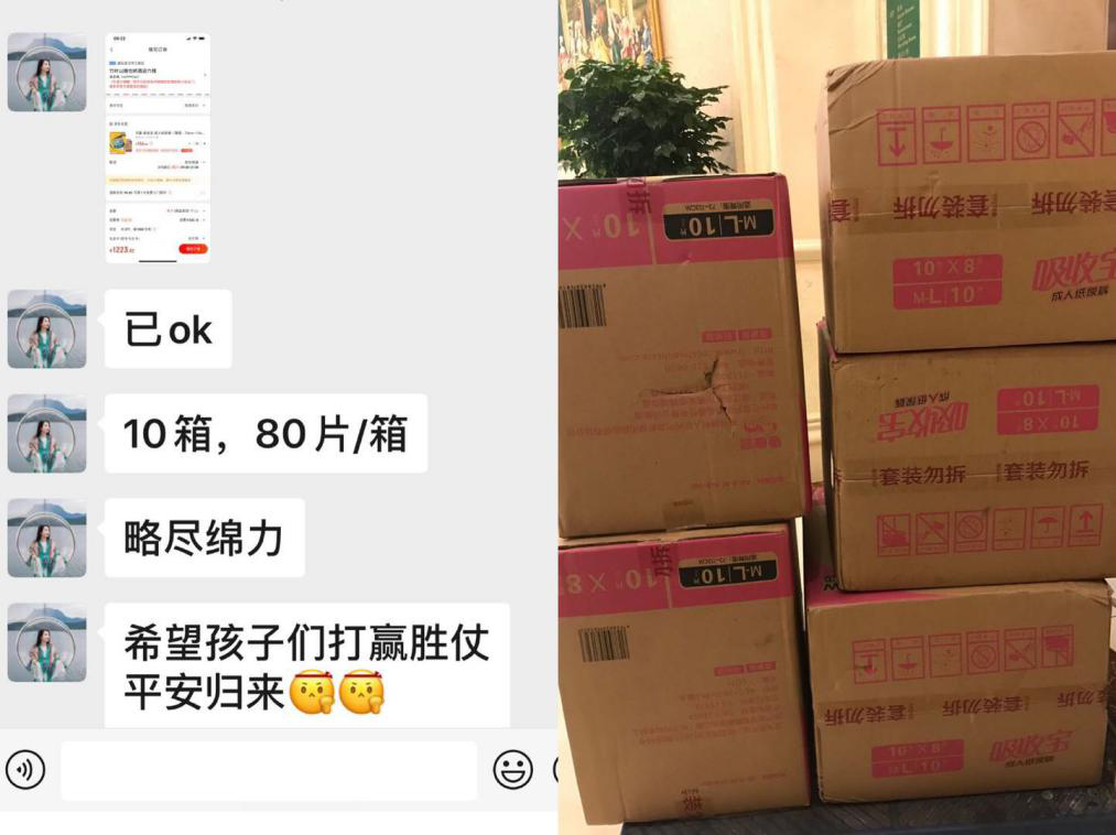 2月16日早上,李文蓓老师向护理学院王秀岚院长一番打听后,了解到前线战“疫”存在物资短缺的情况,加上寒流袭击,使前线医护人员处境艰难。迅速地,她在确认清楚武汉的物流情况后,通过网络平台订购了一批物资,为“最美逆行者”解决一些燃眉之急,并且衷心希望他们能在奋战的同时保护好自己。随后,她委托王院长向他们送上自己最真挚的祝福和敬意:打赢战“疫”,平安归来。