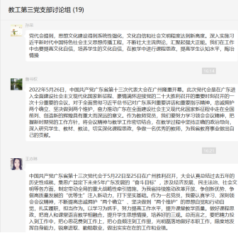2022年6月22日下午,122cc太阳集成游戏教工第三党支部举行党日专题学习活动,由孙荣副书记主持,采取线上的方式集中学习了第十三次党代会精神。