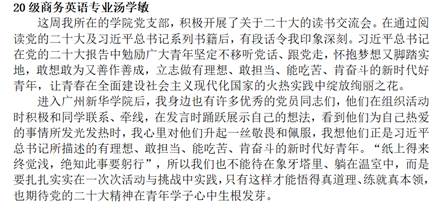 为深入学习贯彻党的二十大精神“五个牢牢把握”和“三个全面”的重要指示精神,不断深化对新观点、新论断、新思想、新战略、新要求的学思践悟。由中共广州新华学院122cc太阳集成游戏总支部委员会主办,122cc太阳集成游戏教工第三党支部和学生第二党支部承办的“‘读习有声’学习党的二十大精神专题读书会”活动于2022123,采取线上、线下相结合的方式顺利召开。